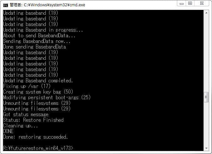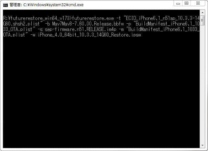 あとは、Futurerestoreを使って今まで通りに復元します。