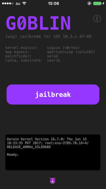 iOS 10.3 – 10.3.3の64bit A7-A9デバイスを脱獄できる「g0blin jailbreak」 | Will feel Tips iOS 10.3からiOS 10.3.3までの64bit A7-A9デバイスを脱獄できる「g0blin jailbreak」が正式リリースされました。 実際にiPhone 5sを...