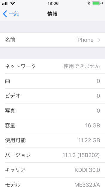 上手くいくとこのようにiOS 11.1.2に復元することが出来ました。