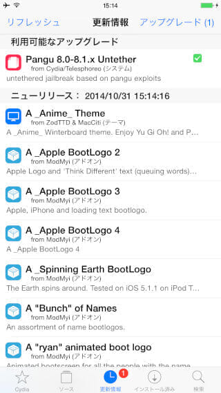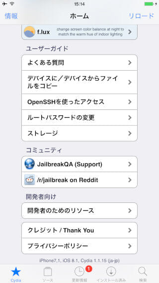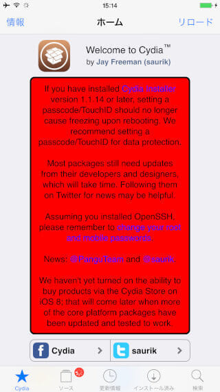自動的にRebootするので再度Cydiaを開くと・・・