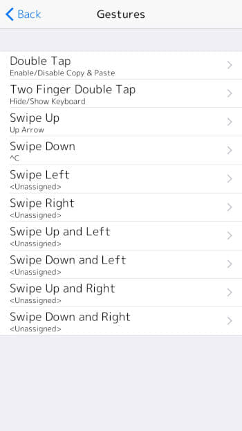 Gesturesでは画面上でジェスチャーをした時の動作を設定できます。