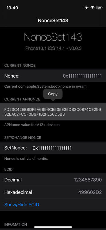 NonceSet143 - iOS 14に対応したshsh2ファイルの取得やgeneratorをセットするための脱獄アプリ