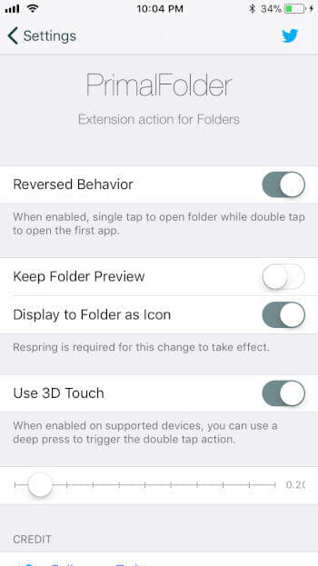 有効にすると、フォルダアイコンは変更されません。この変更を有効にするにはRespringが必要です。