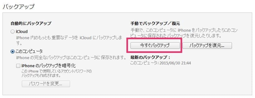 1.iTunesでデータのバックアップ