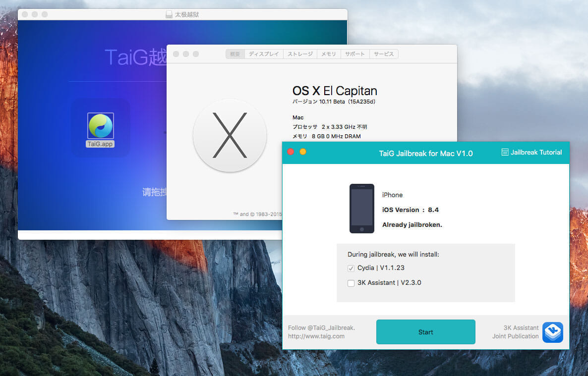 2015/08/02、TaiGよりMac OS Xに対応した脱獄ツール『TaiG Jailbreak for Mac』がリリースされました。