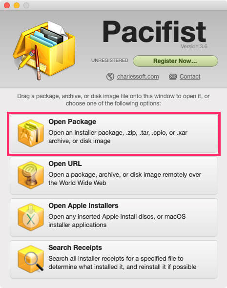 1)Pacifistの「Open Package」→デスクトップにある「Install iTunes.pkg」を選択して「Open」