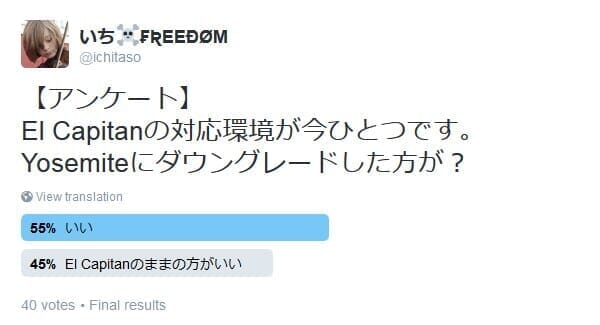 また、PopClipというアプリもダブルクリックしてやっと反応するという感じでしたので、快適に動作するYosemiteにダウングレードすることにしました。
