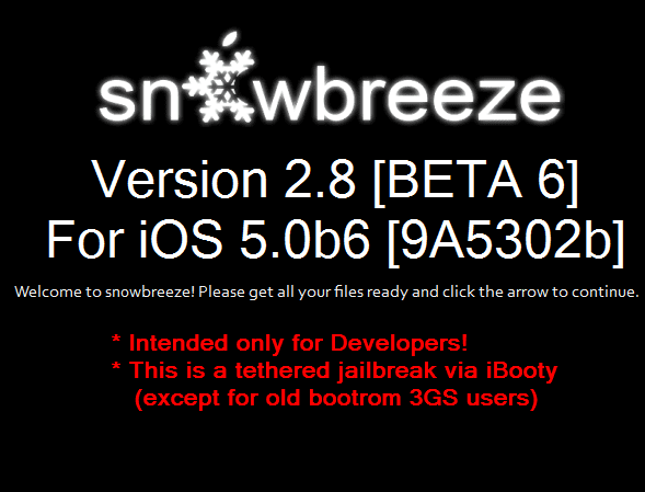 iOS 5 beta 6 対応 Jailbreak tool sn0wbreeze v2.8 BETA 6 リリース