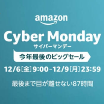 Amazonジャパンは、12月6日から12月9日23時59分まで開催するセール「Amazonサイバーマンデー」を行っています。