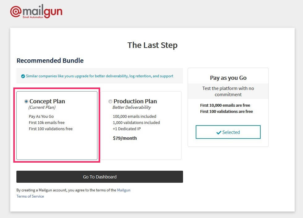 Concept Plan(無料)を選択して終わりです。